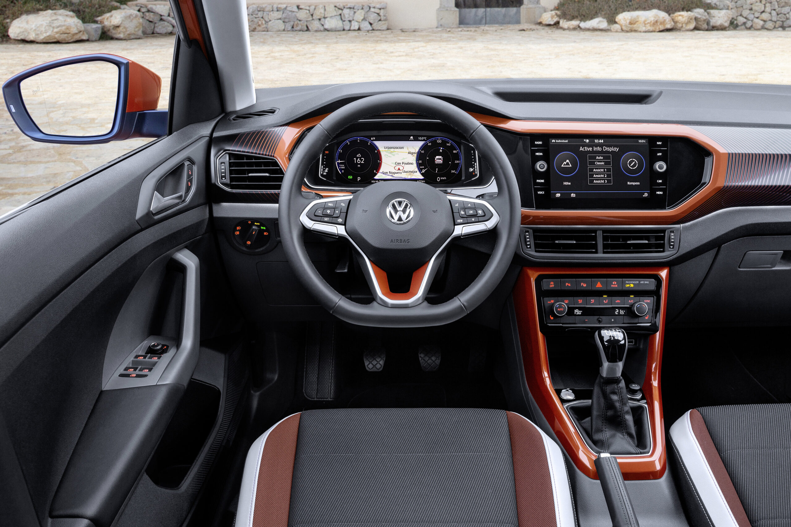 Sėdę vidun patenkame į „Volkswagen“ pasaulį. Prietaisų skydas primena „Touareg“, reikiamą mygtuką paspaustų net neregys, tačiau įspūdį gadina pigaus plastiko detalės. Tačiau galima reikalus pataisyti investavus kiek daugiau nei 700 eurų į „Energetic Orange“ arba „Bamboo Garden Green“ paketus. Už tai gausite dozę išskirtinumo – apelsino arba liūties nuplauto bambuko miško spalvos derinius automobilio viduje, ant ratlankių ir šoninių galinių vaizdo veidrodėlių. Tuomet iš tiesų atrodysite kiek žaismingai.