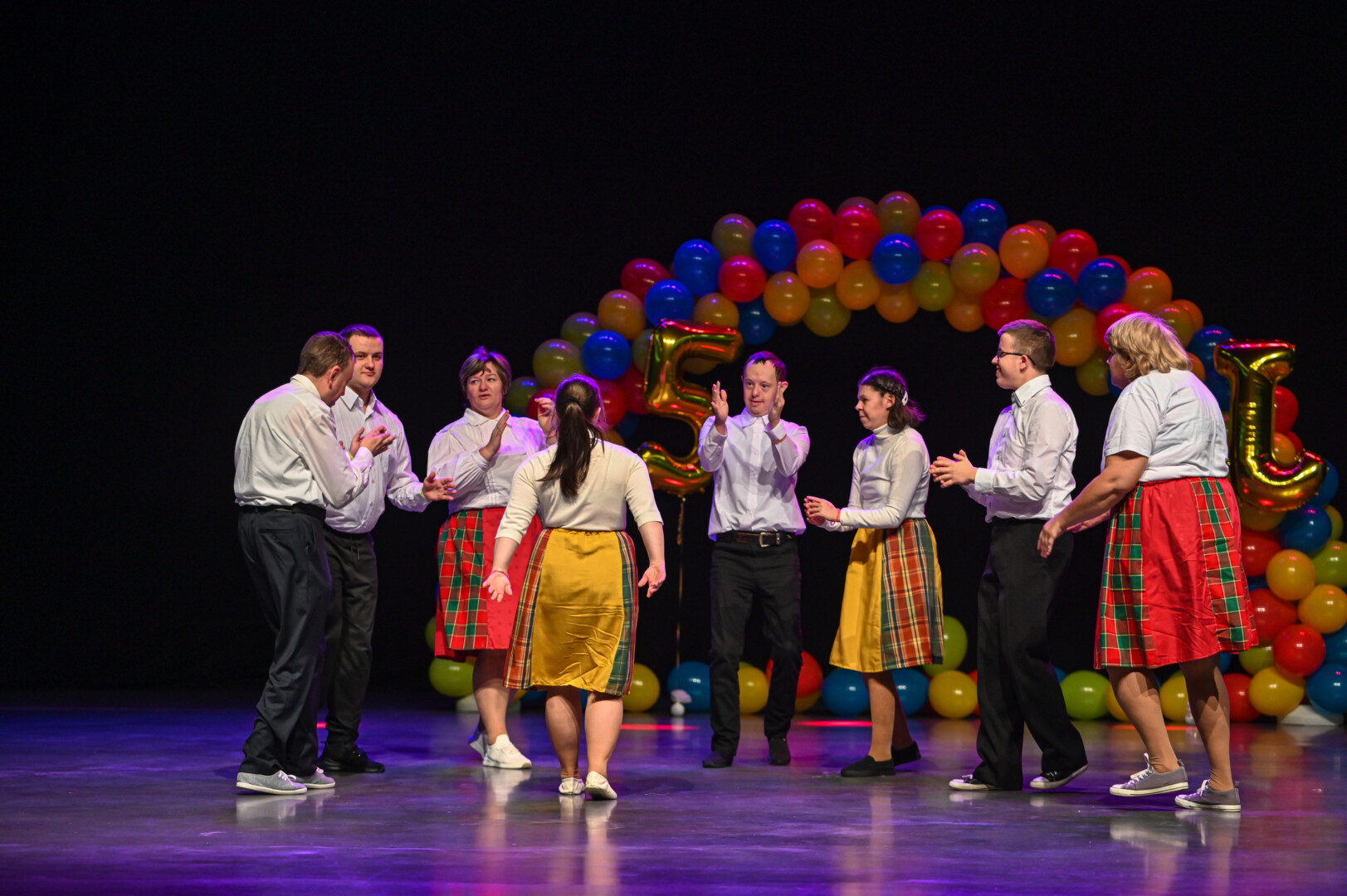 Panevėžio arenos stogas ketvirtadienio popietę tikrąja to žodžio prasme kilnojosi. Scenoje tądien vyko fizinę ir protinę negalią turinčių žmonių šokių festivalis „5J“, kurį jau dešimtą kartą organizuoja išradingieji Panevėžio jaunuolių dienos centro lankytojai.