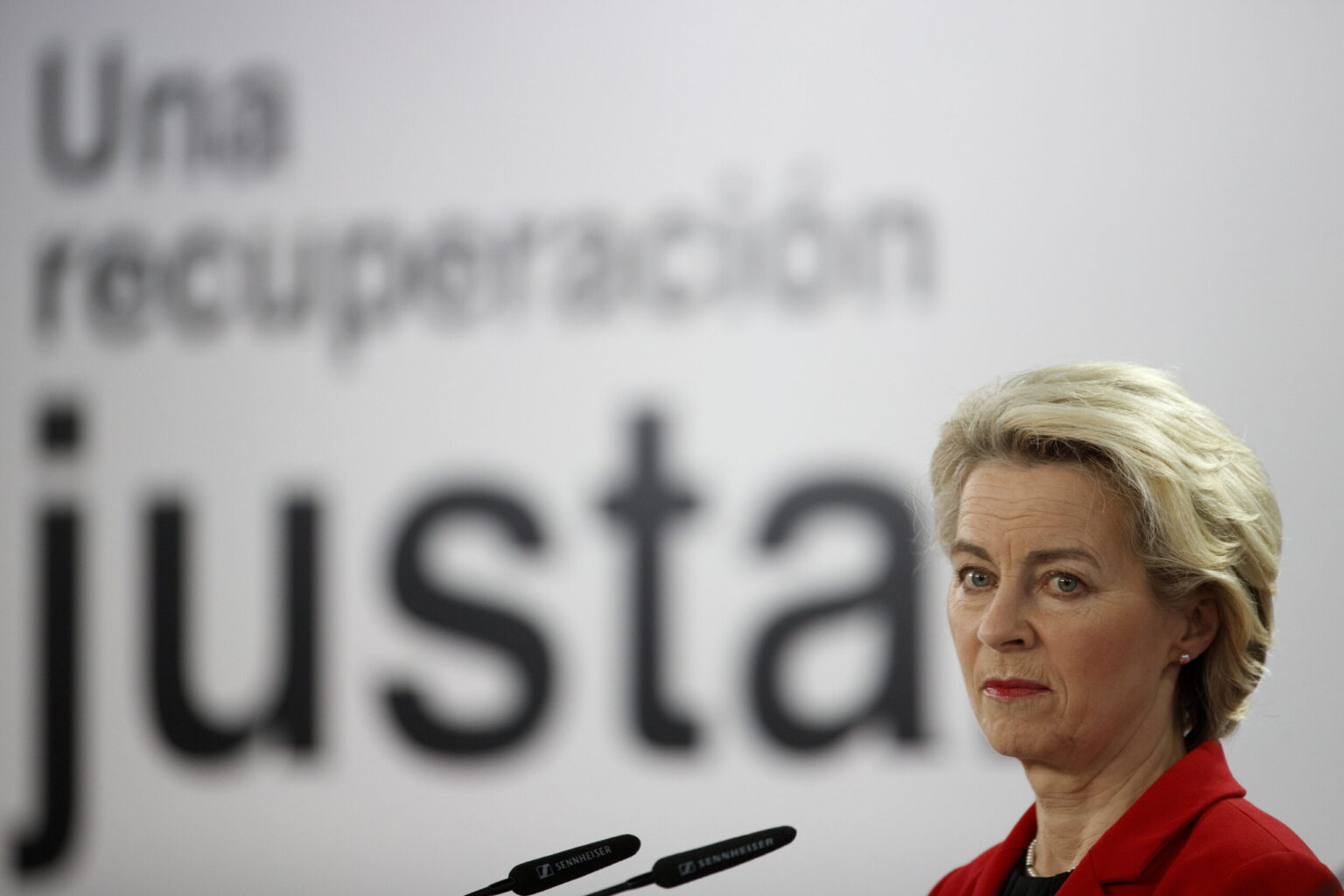 Atsakydama į klausimą dėl energijos išteklių importo iš Rusijos stabdymo, U. von der Leyen sakė, kad ši galimybė neatmetama. Situacija toliau stebima. ES, anot pirmininkės, turi intensyviai siekti, kad taptų nepriklausoma nuo iškastinio kuro. Jei pati Rusija nutrauktų dujų ir naftos tiekimą, žiemą neabejotinai pavyks atlaikyti, sakė U. von der Leyen. Rusijos koncerną „Gazprom“ ji pavadino nepatikimu.