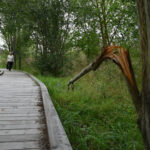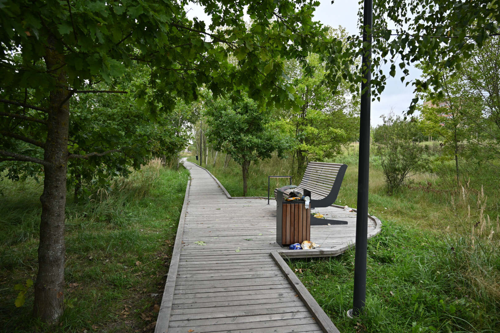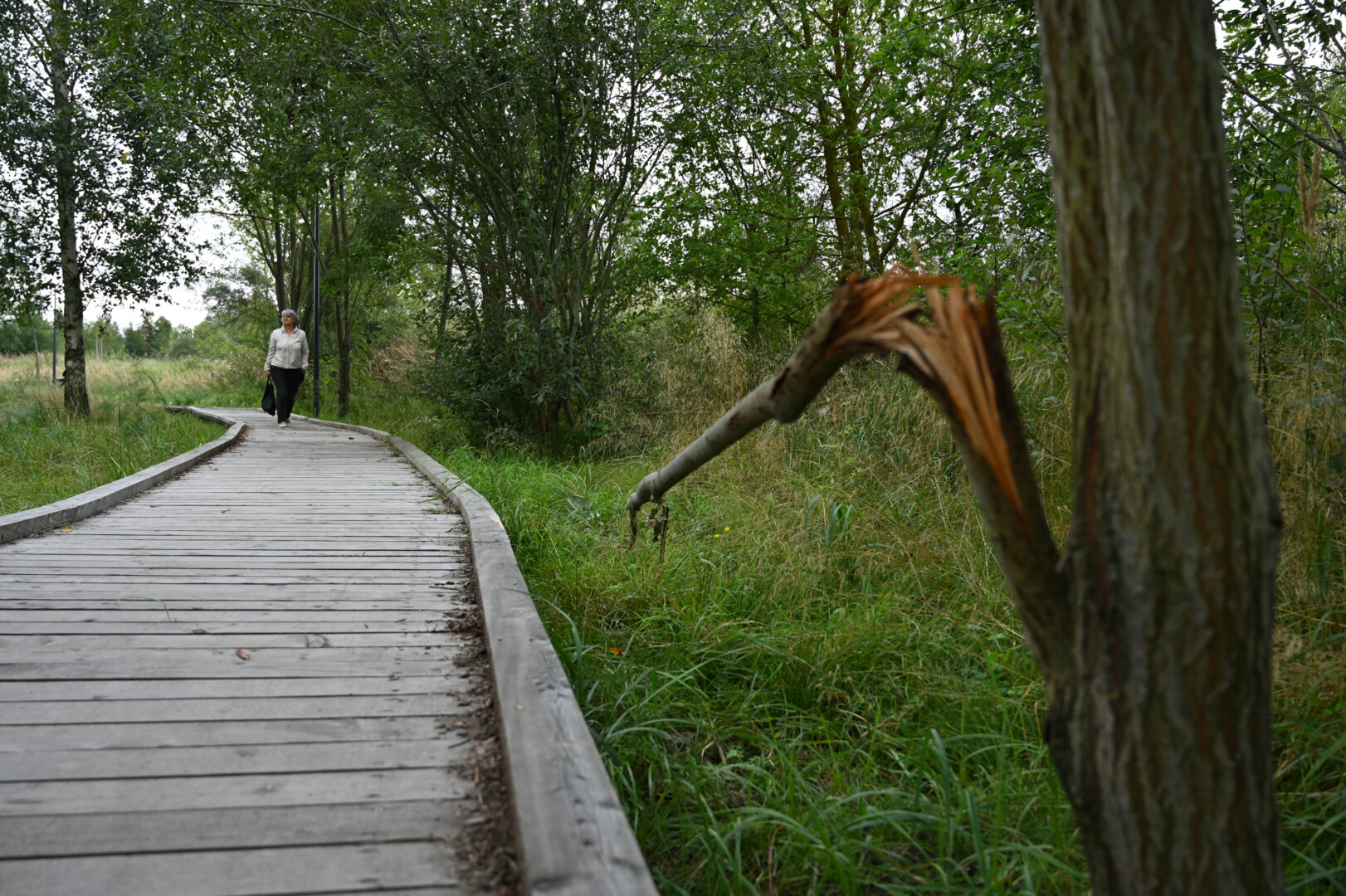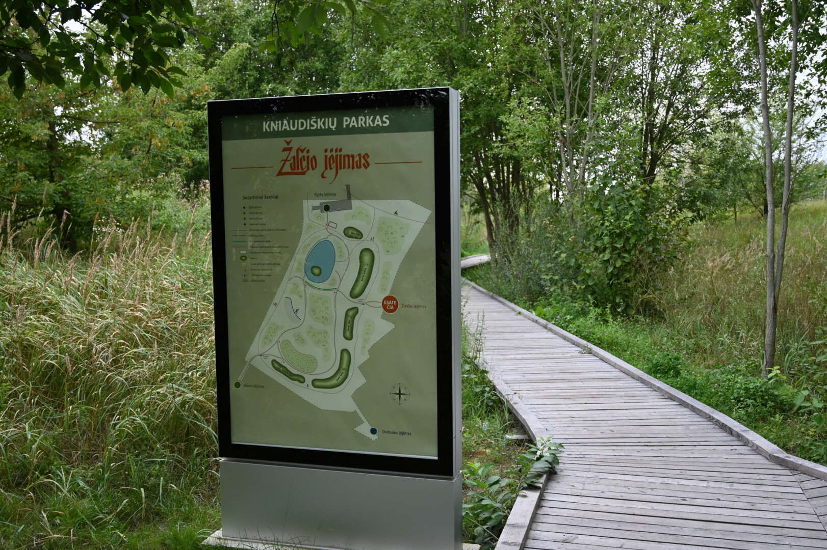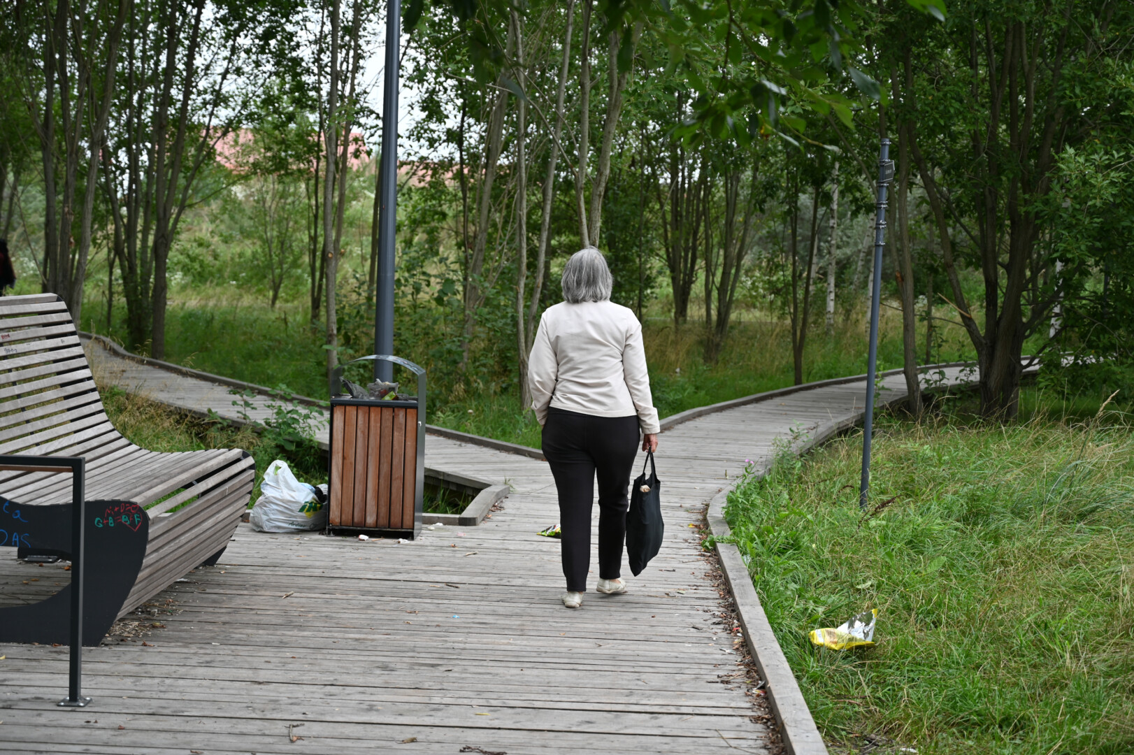 Grįžus iš aukšta žole ir dilgėlėmis apaugusio parko tenka gerai apsižiūrėti, ar neparsineši erkių. Ir batų padus pašveisti, nes ant išklotų medinių takų kas keli žingsniai – dvokiantis, prie padų limpantis keturkojų palikimas.