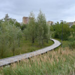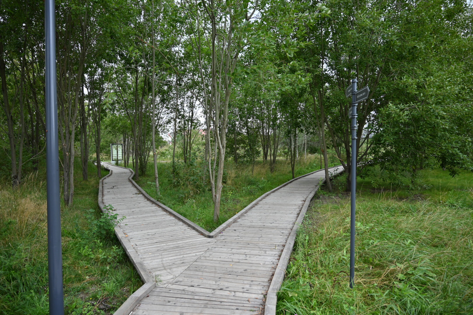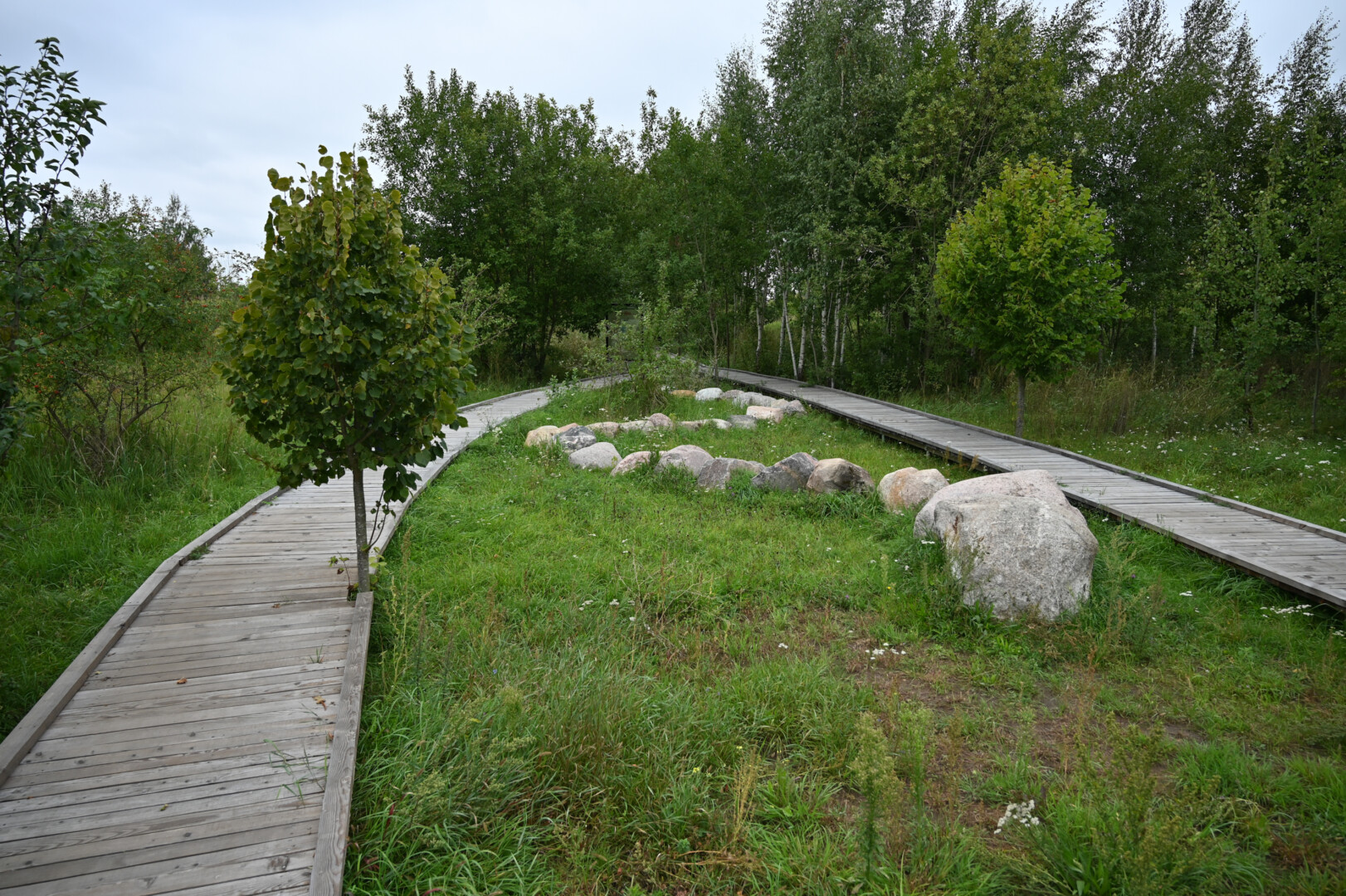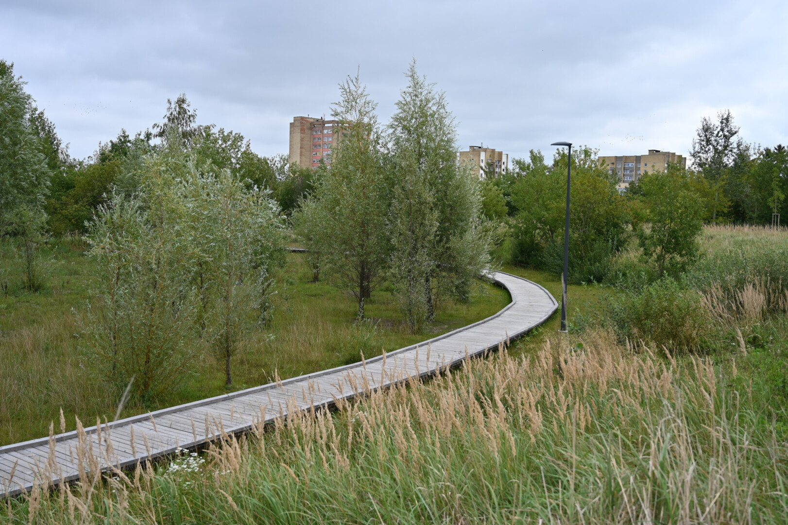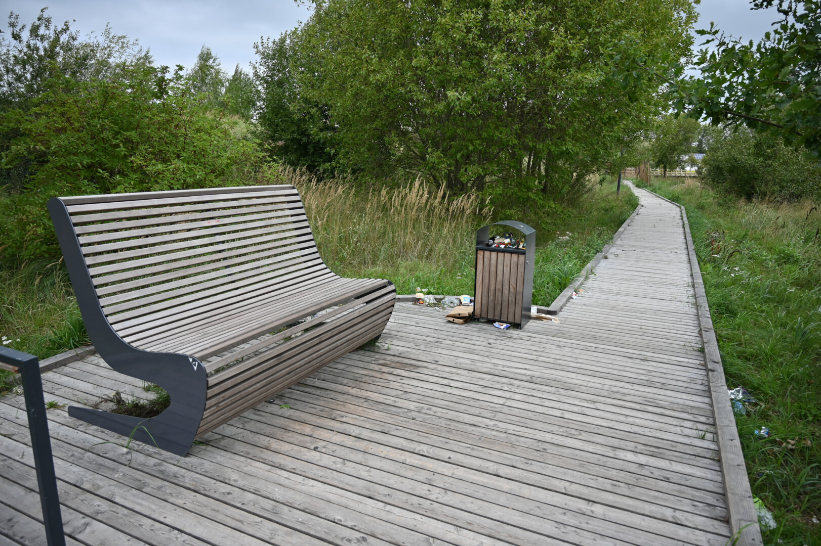 Grįžus iš aukšta žole ir dilgėlėmis apaugusio parko tenka gerai apsižiūrėti, ar neparsineši erkių. Ir batų padus pašveisti, nes ant išklotų medinių takų kas keli žingsniai – dvokiantis, prie padų limpantis keturkojų palikimas.