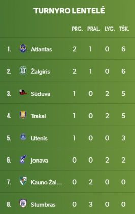 A lygos titulą ginantys „Žalgirio“ futbolininkai po antrosios pergalės su 6 taškais pavijo turnyro lentelės viršuje esantį Klaipėdos „Atlantą“.