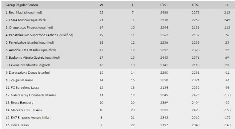 „Baskonia“ komanda (17/13) po nesėkmės nukrito į 7-tąją vietą. Į atkrintamąsias varžybas pateko pirmas aštuonias vietas užėmusios ekipos.