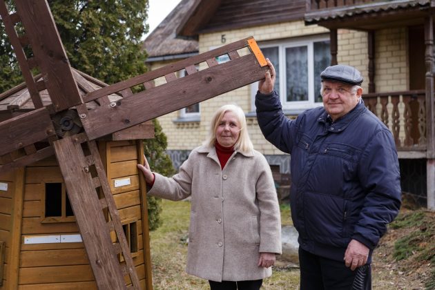 Vyras meistrauja iš medžio – kiemui papuošti vėjo malūną sukonstravo, dailią koplytėlę pastatė, įvairių mielų smulkių darbelių padaro.