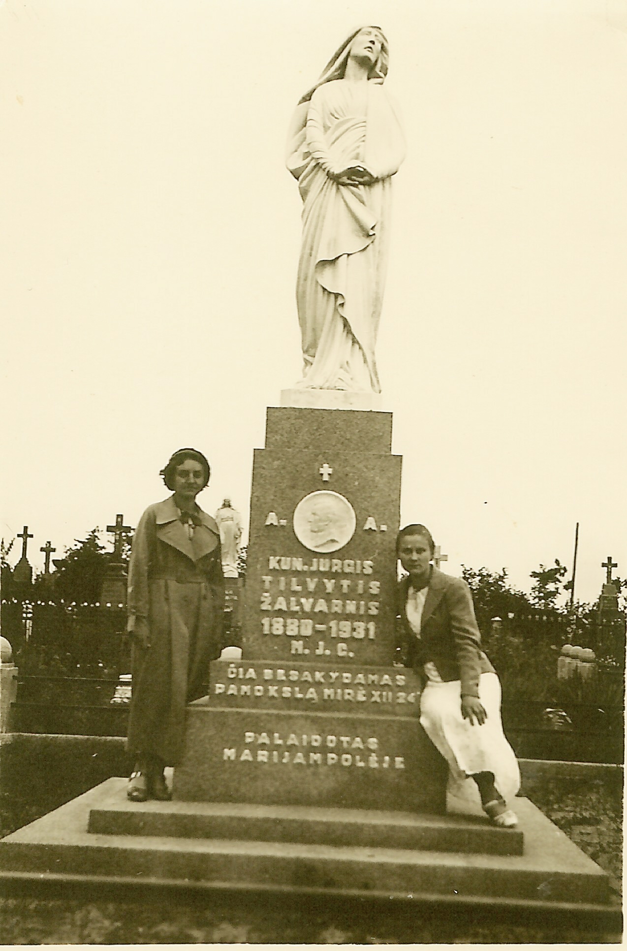 Surinkus aukas paminklo statybai, 1936-ųjų rugsėjį Ramygalos gatvės kapinėse, vietoje, kur J. Tilvytis sakydamas pamokslą mirė, pastatytas ir iškilmingai atidengtas dirbtinio balto marmuro paminklas – Nekalto Prasidėjimo Švč. Mergelės Marijos skulptūra. Ją pašventino marijonas tėvas T. Senkus.