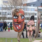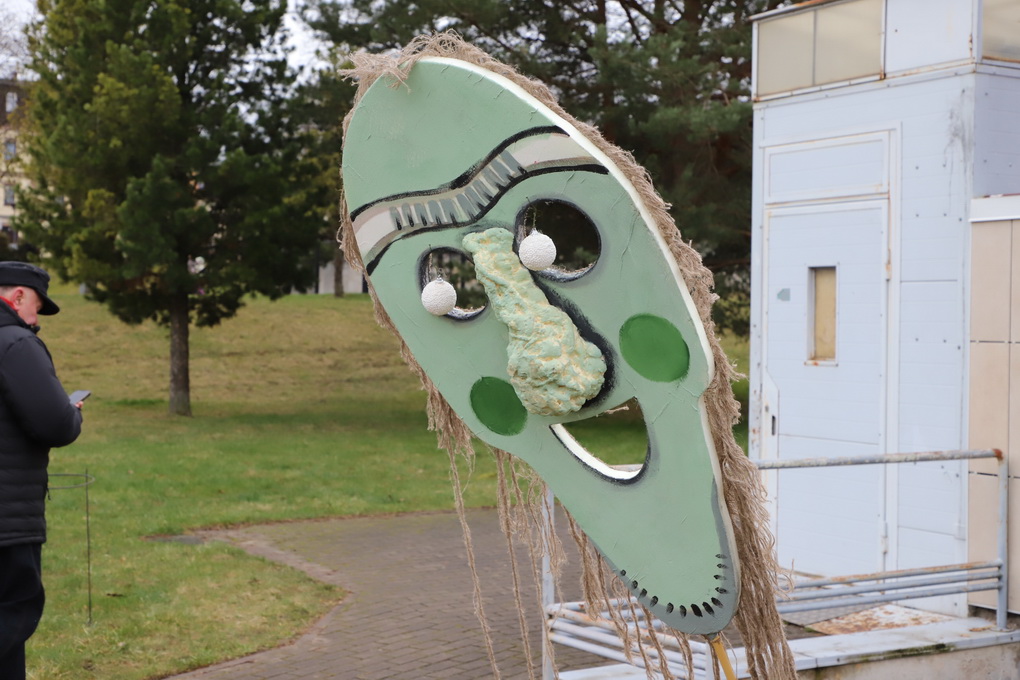 Užgavėnės Panevėžyje prasidėjo su vėjeliu – visomis prasmėmis. Kol svečiai šurmuliavo prie koncertui paruoštos scenos, įsismarkavęs vėjas išvartė šventines dekoracijas: stovai su didžiulėmis kaukėmis jam buvo it plunksnelės.