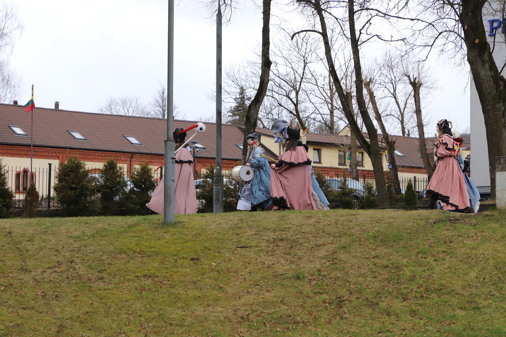 Į Panevėžio gatves sekmadienį triukšmingai išėję Užgavėnių persirengėliai juokėsi, kad šiemet žiemos vyti nebereikia.