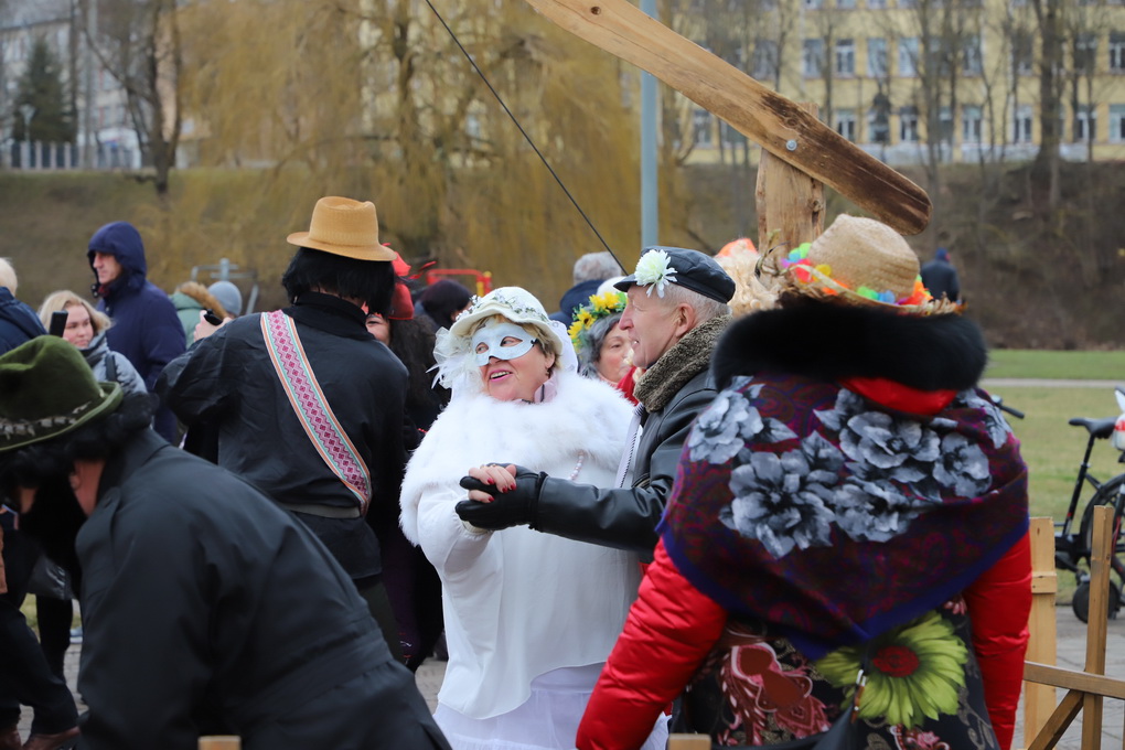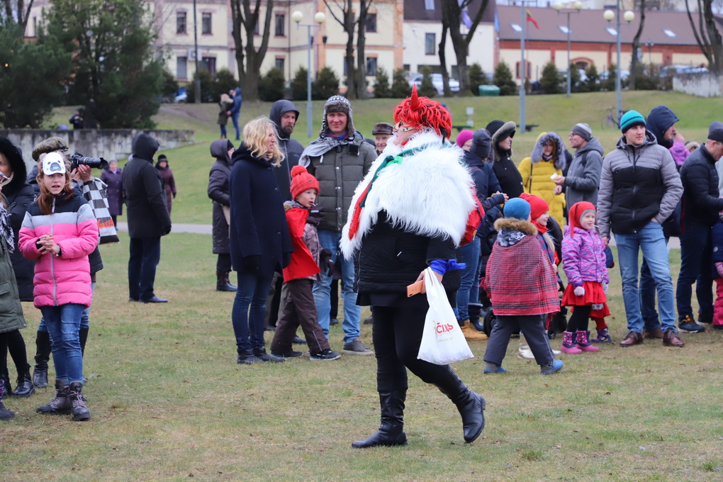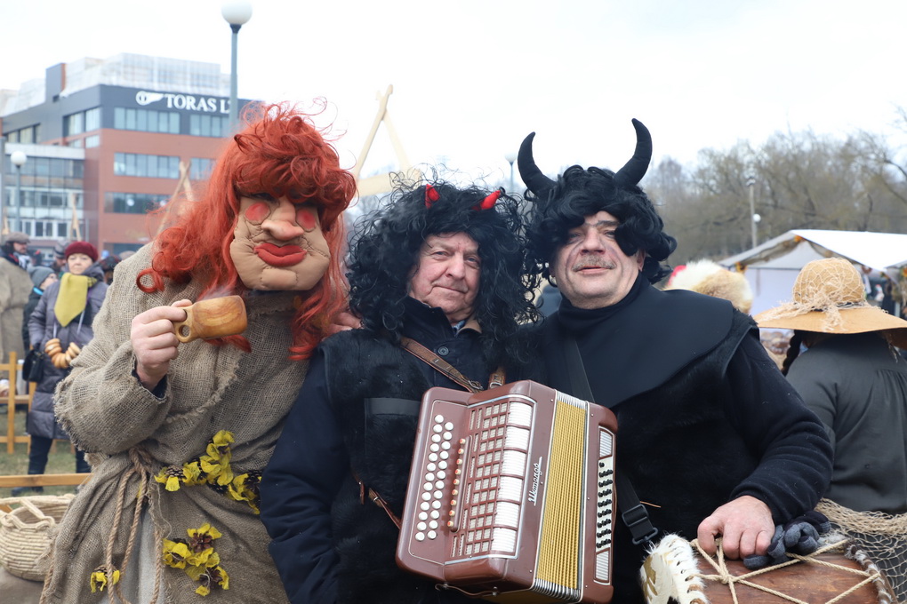 „Kalbėkime atvirai – nėra šiemet ko išvyti, – šypsojosi panevėžietė Jolita. – Ryte lynojo truputį, bet gyvenam čia šalia, tai ir atėjome. Įdomiausia pažiūrėti kaukių. Vis šiokia tokia pramoga, o ir galimybė prisiminti lietuviškas tradicijas.“