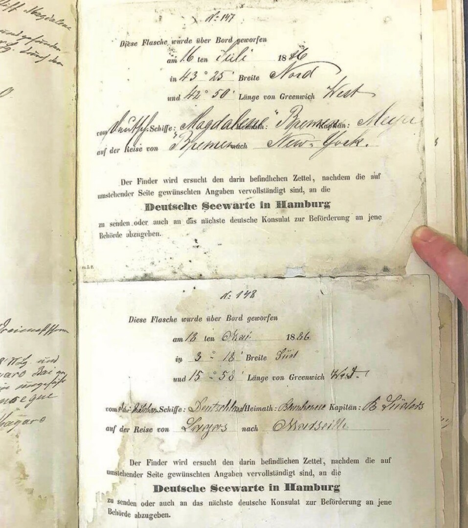 Per 69 metus trukusį Vokietijos eksperimentą išmesti tūkstančiai butelių, tačiau iki šiol buvo grąžinti tik 662 pranešimai – ir nė vieno butelio. Paskutinis butelis su panašiu rašteliu rastas Danijoje 1934 m.