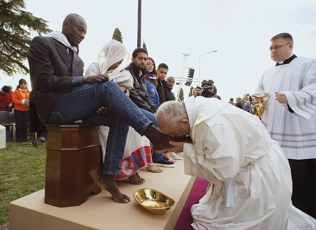 Pasaulis tiesiog tirpo stebėdamas Bažnyčios tėvą, parklupusį plauti kojų pabėgėliams, tarp jų ir musulmonams.