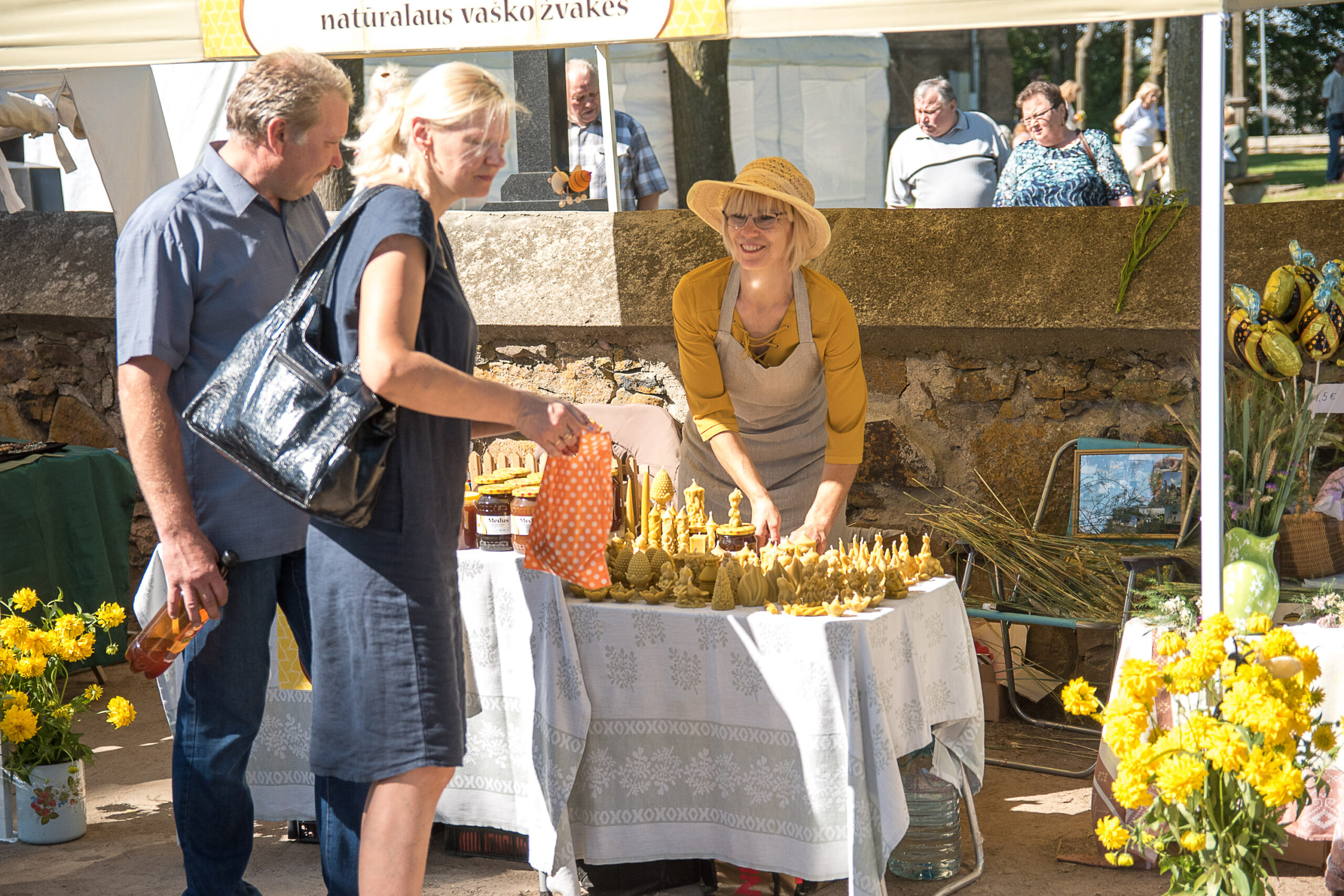 Antrus metus bičių produktais Žolinės atlaiduose prekiaujanti ponia Daiva teigė, jog pernykštė sėkmė paskatino grįžti dar sykį. Panevėžietė moteris drauge su vyru turi sodybą Biržų rajone, kurioje ne tik poilsiauja, bet ir darbuojasi bityne.