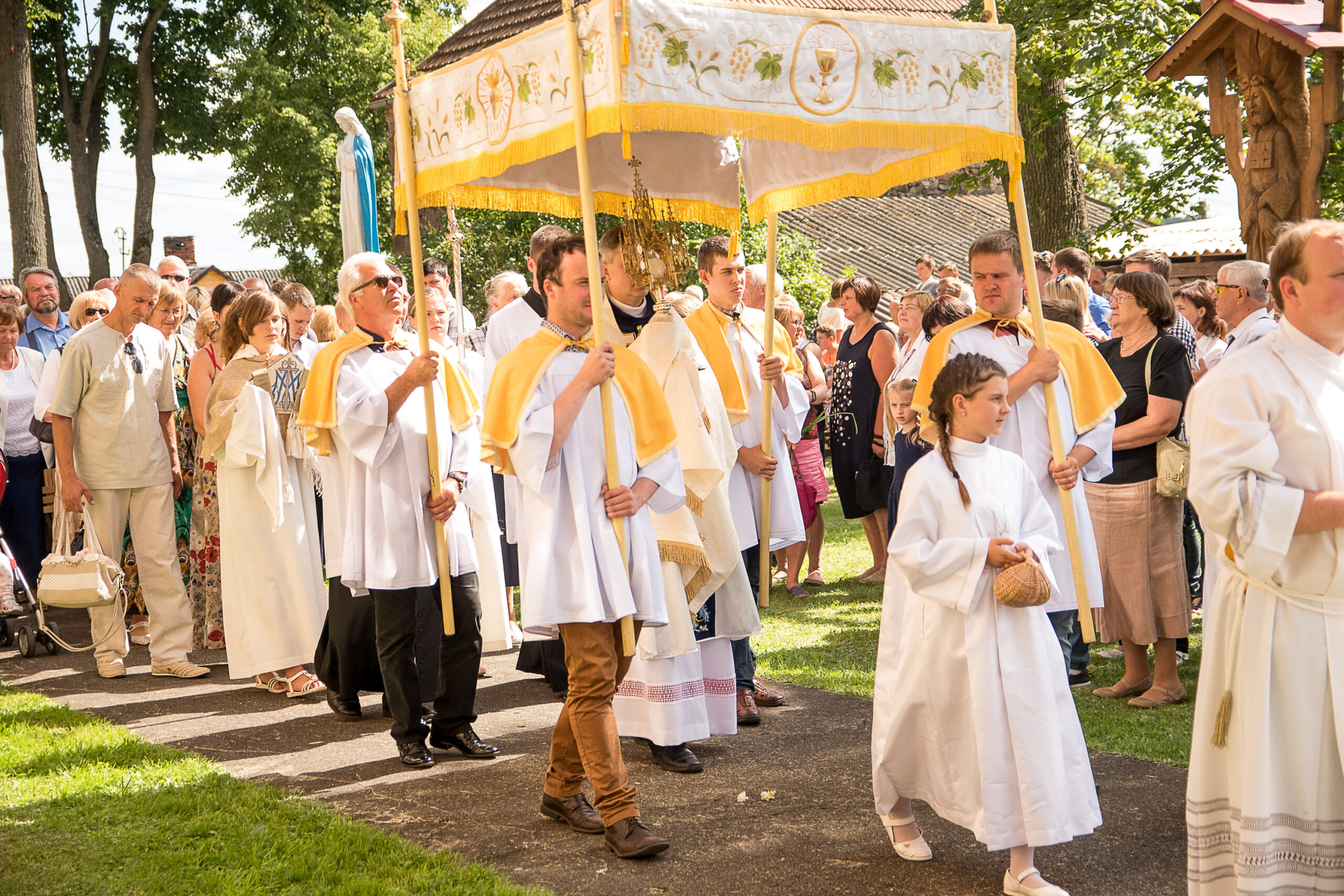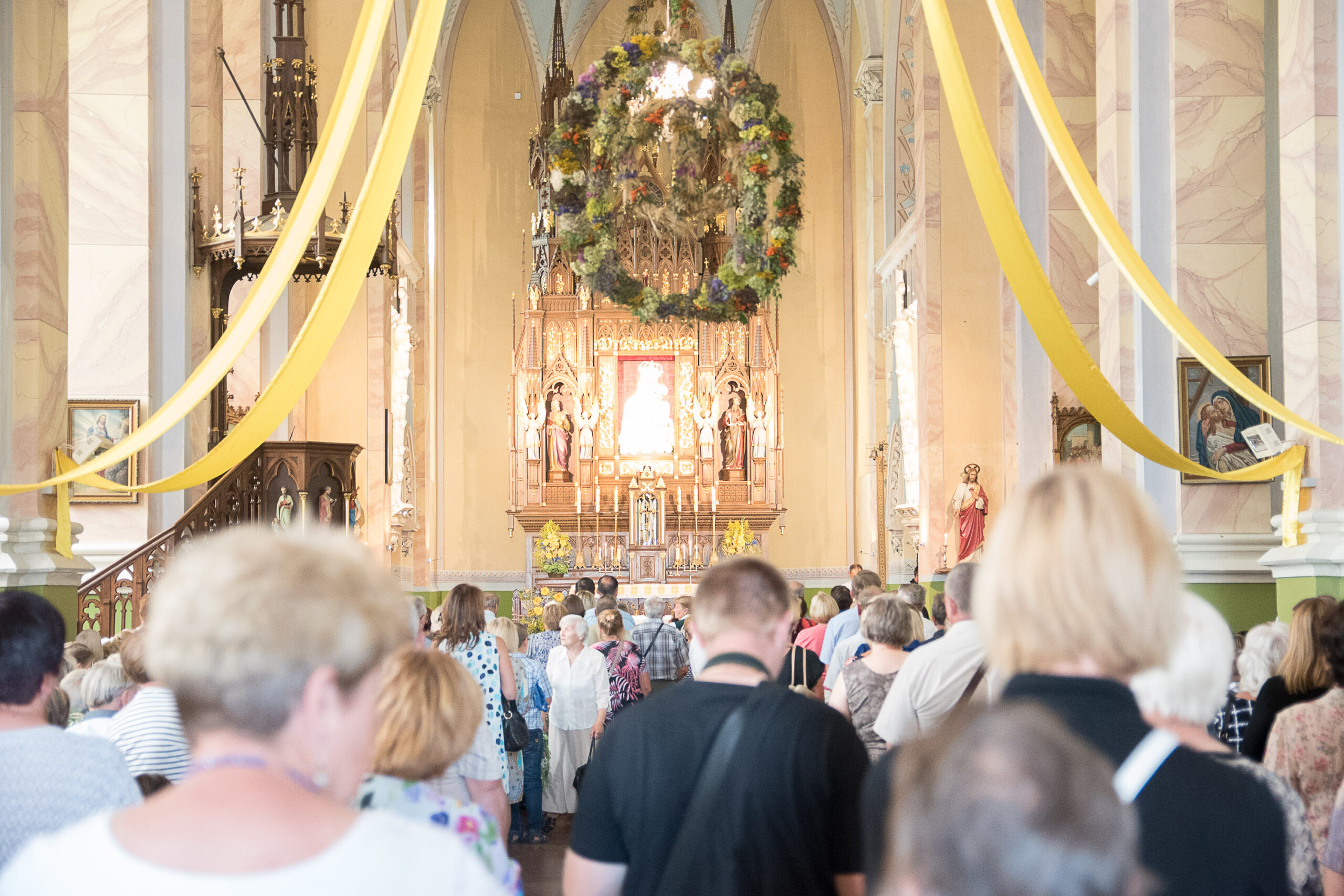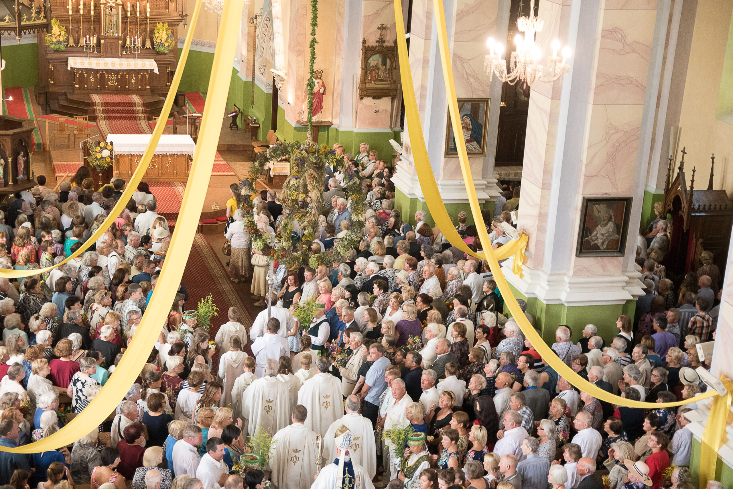 Nors miestelio gatvės atgijo jau ankstyvą rytą, daugiausia svečių susirinko vidurdienį Švč. Mergelės Marijos Ėmimo į dangų bazilikoje. Žolynais nešini žmonės būrėsi bažnyčioje, o joje nesutilpusieji mišių tradiciškai klausėsi lauke. Pasibaigus pamaldoms, visa minia dalyvavo iškilmingoje procesijoje.
