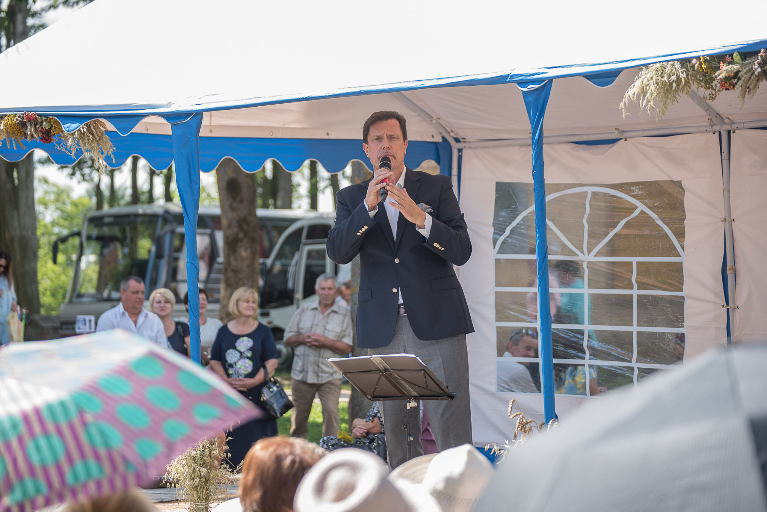Galiausiai popietę šventės dalyviai susibūrė aplink šalia Bazilikos pastatytą sceną. Čia savo koncertinę programą pradėjo Vytautas Juozapaitis su žmona Egle bei dukra Ieva. Vietų pritrūkę krekenaviškiai ir miestelio svečiai įsitaisė ant žolės, o kai kurie įsidrąsinę šoko. Tarp jų buvo ir Krekenavos klebonas kunigas G. Jankūnas, sulaukęs paties operos solisto komplimentų – V. Juozapaitis tikino, jog vien dėl to vertėjo atvykti į šventę, – ir gausių parapijiečių aplodismentų.