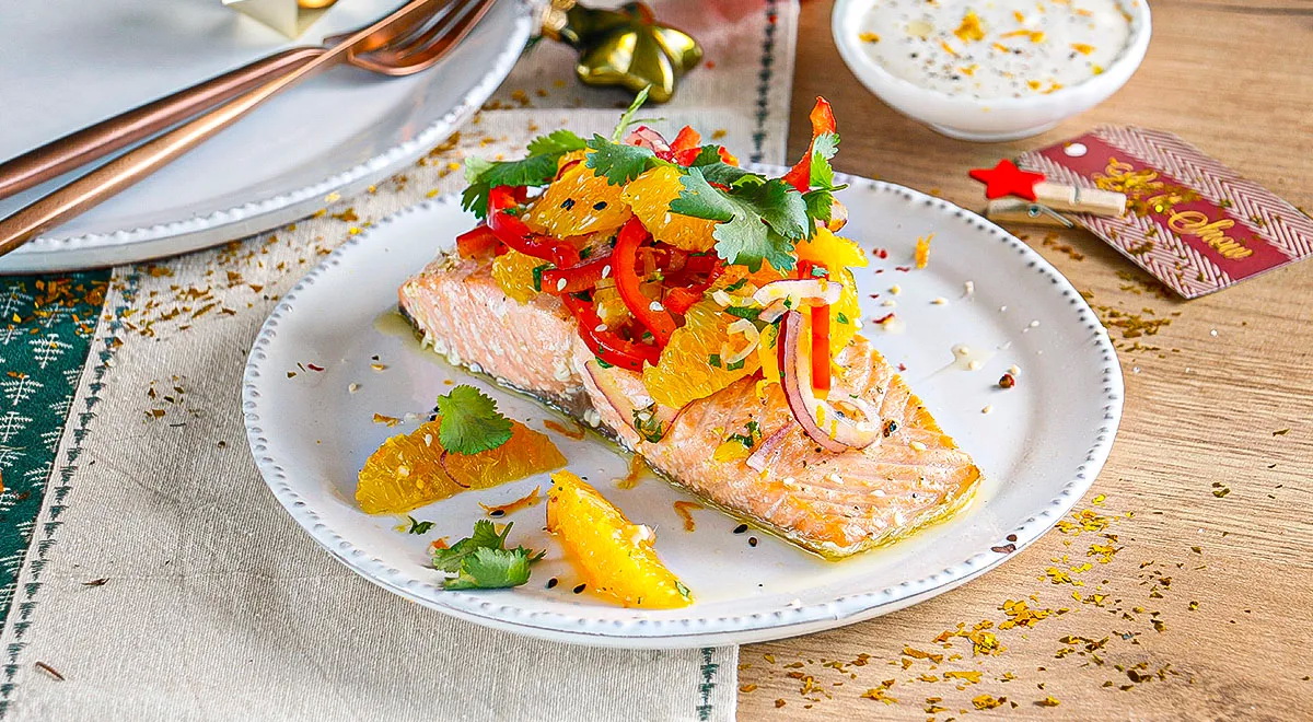 Lašiša su pikantiškomis apelsinų salotomis