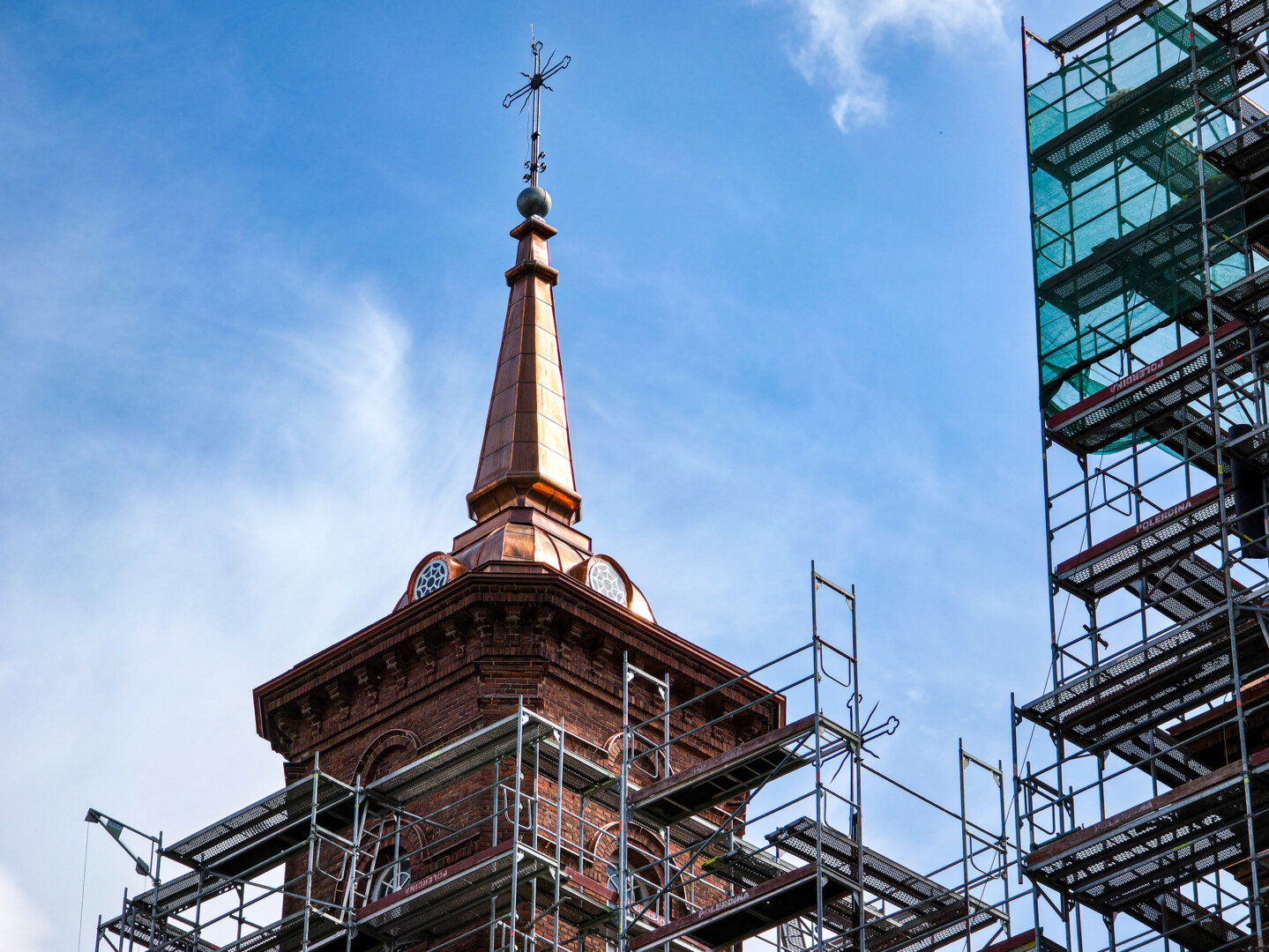 Praėjusią savaitę, kai buvo baigti dengti stačiatikių Viešpaties Prisikėlimo cerkvės kupolai, darbus užbaigė ir meistrai Panevėžio Šventųjų apaštalų Petro ir Povilo bažnyčioje.