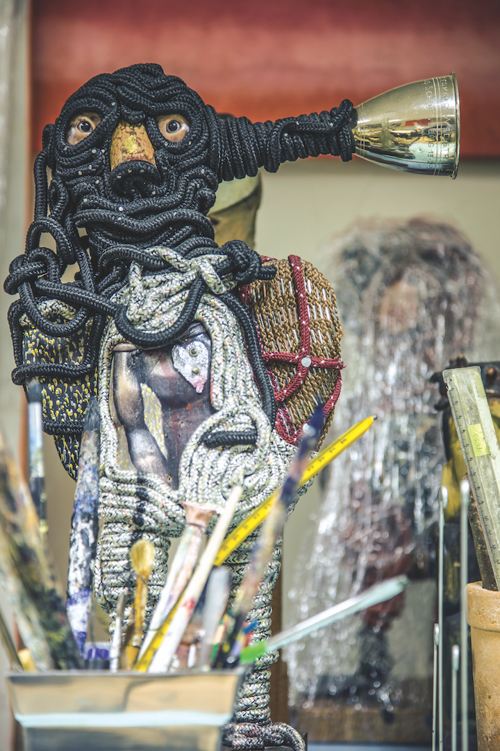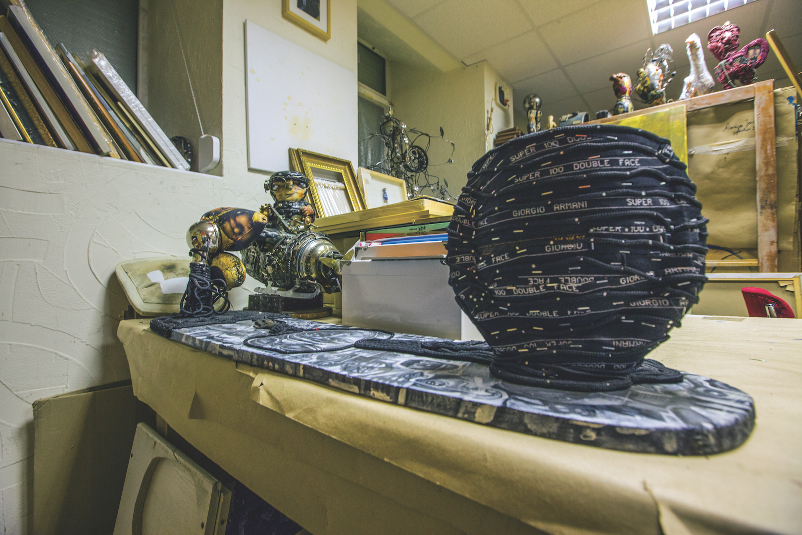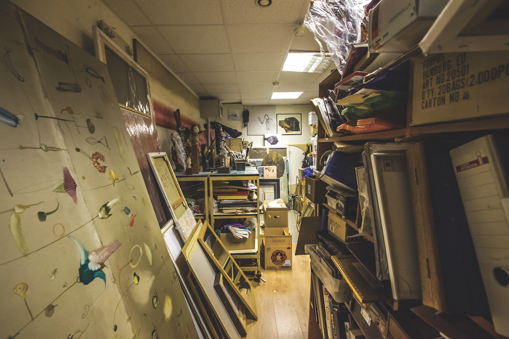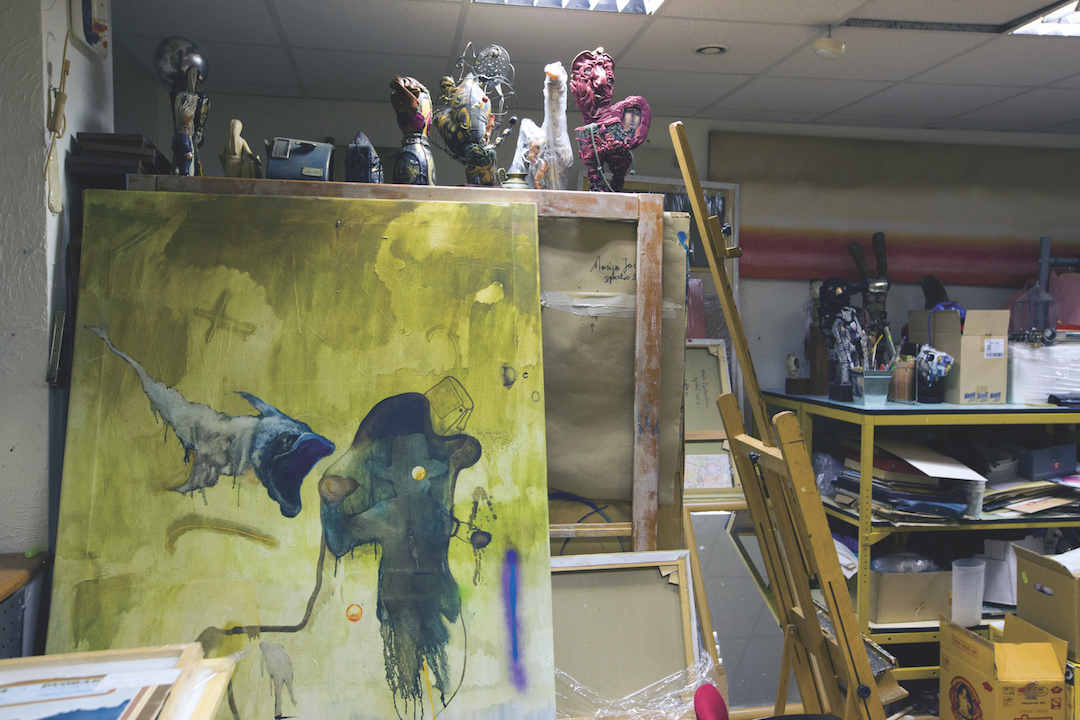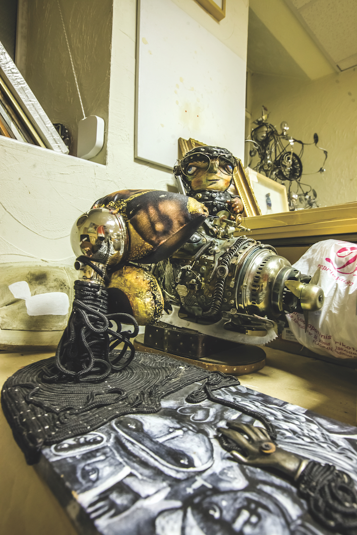 Studijoje dabar yra netvarka. Ši netvarka iš tikrųjų yra mano praeitis. Jau šešeri metai aš nedirbu, tad čia viskas yra užšalę. Dažnai ateinu čia, po truputį tvarkausi, išnešu po kelias dėžes daiktų. Negaliu sakyti, jog visiškai pasitraukiau iš kultūrinio gyvenimo. Kas dvejus metus reguliariai rengiu savo personalines parodas. Tačiau atėjo etapas, kai supratau, jog man reikia pertraukos. Pamenu, vienas menininkas man sakė, jog ateis laikas, kai sustosiu. Iš tokios jo nuomonės aš tada juokiausi, o dabar matau, kad ir man tas nutiko. Sustabdęs intensyvią meninę veiklą, aš pradėjau valyti save iš vidaus: mečiau rūkyti, atkreipiau dėmesį į savo vidinę būseną. Savęs suvokimas padeda išsigryninti ir meniniam braižui. Dabar mano darbai pasidarė asketiški, minimalūs. Man patinka tai, kas minimalu, nors anksčiau kūriau maksimalią daiktų ir detalių sankaupą.