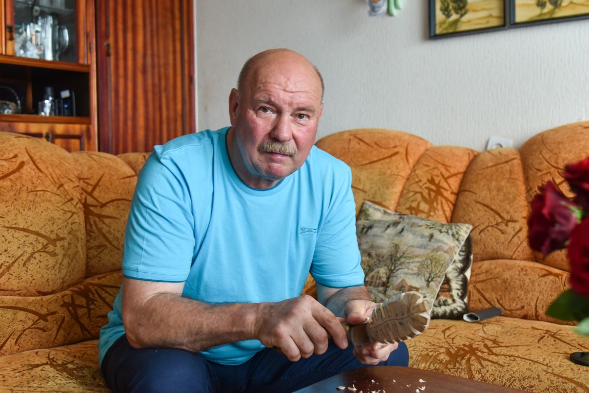 Su medžiu beveik visą gyvenimą dirbantis V. Mirošničenka pripažįsta, jog vaikystėje jo žvilgsnis skriedavo gerokai aukščiau už augalų viršūnes – siekdavo dangų.
