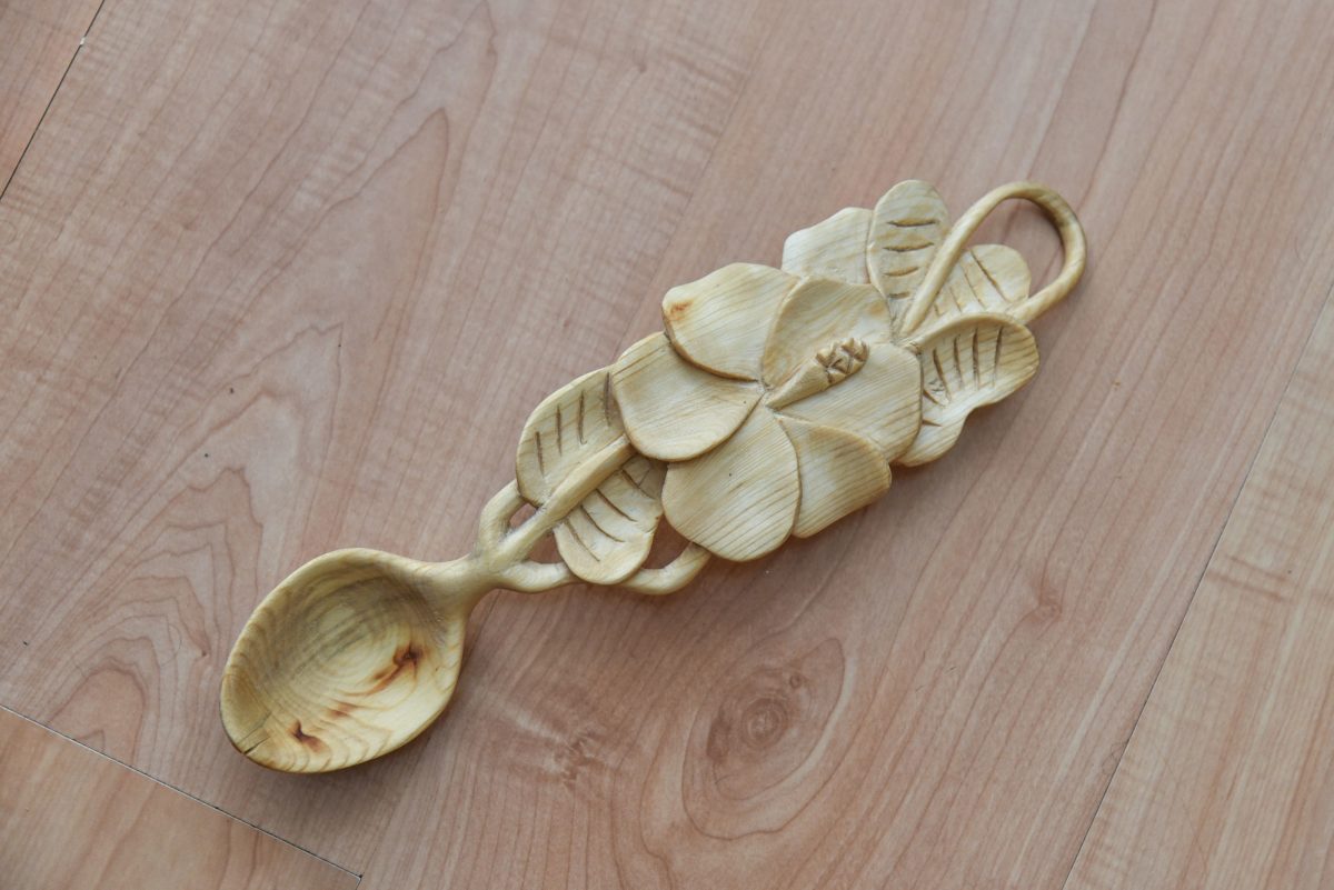 Žmonai darydamas šaukštus mėgsta tulpės žiedus juose išdrožti.