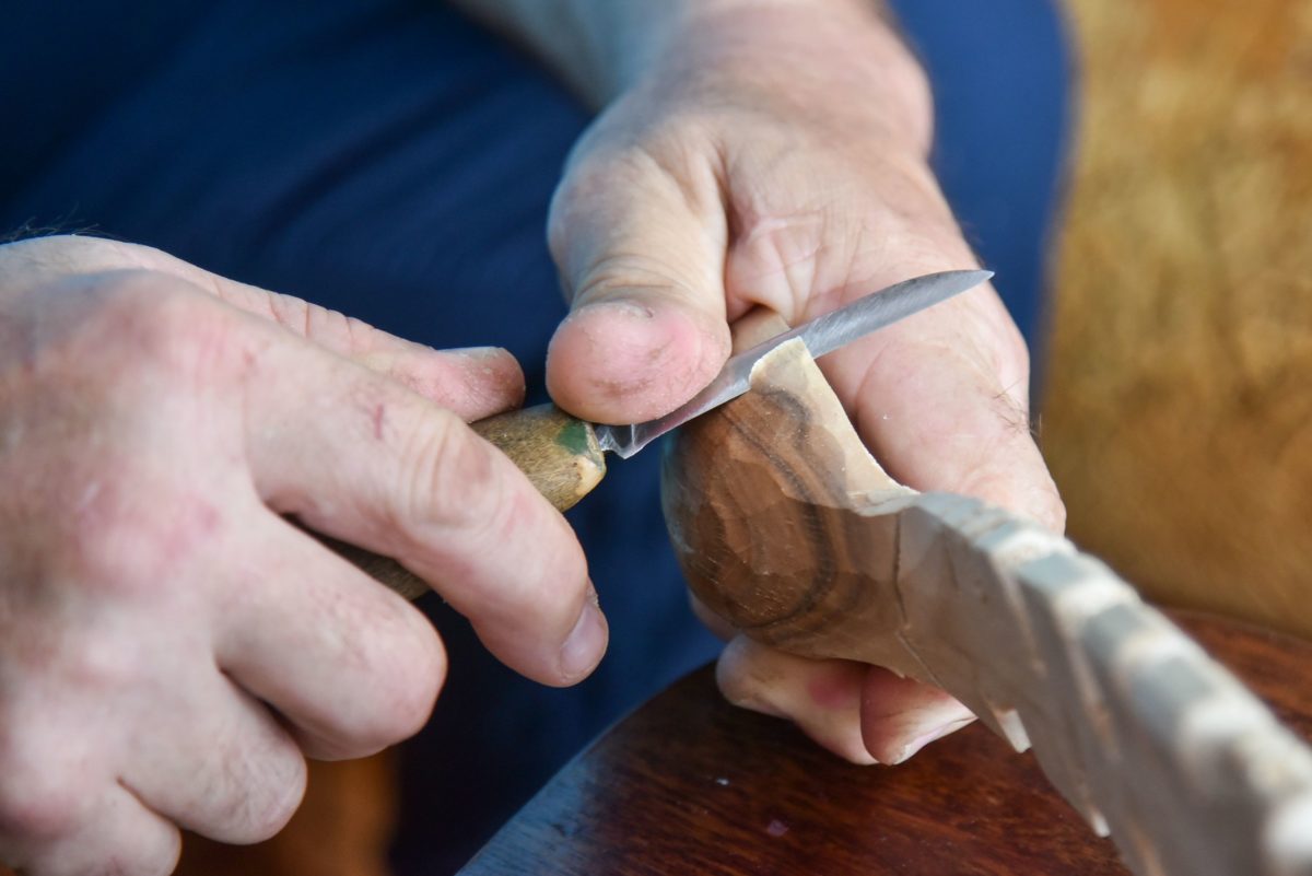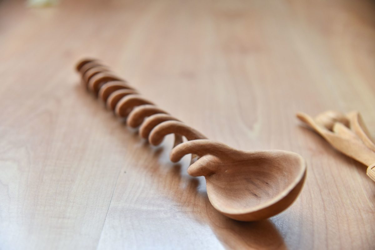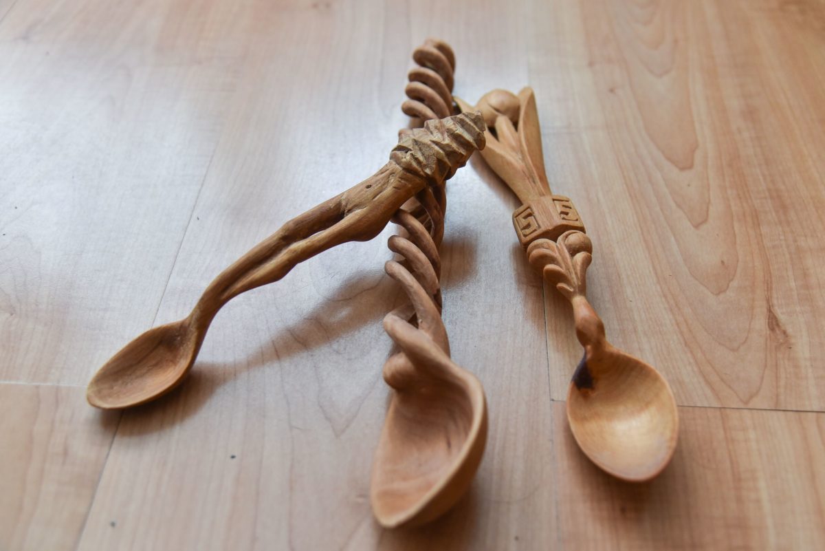 „Lengviausia šaukštus drožti iš liepos ir drebulės. Bet peilis turi būti aštrus. O štai dirbant su obelimi, kriauše, vyšnia peilis gali būti ir bukesnis“, – pasakoja panevėžietis.